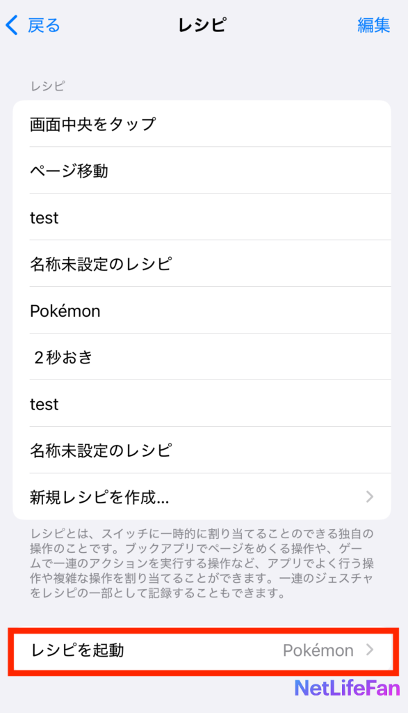 今回、例としてポケモンGo用のテストレシピを作ってみました。