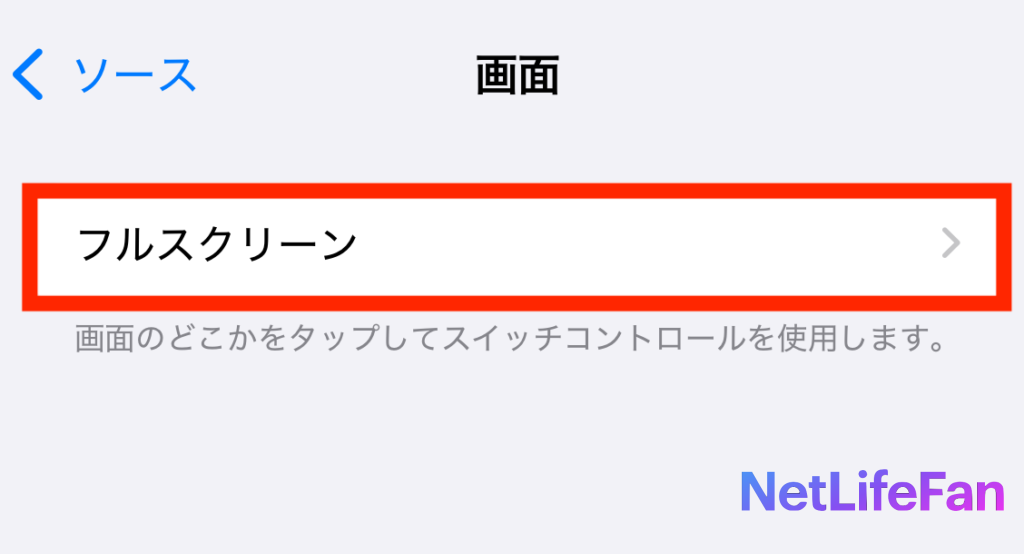 ソースが選べるので「画面」の「フルスクリーン」をタップしましょう。