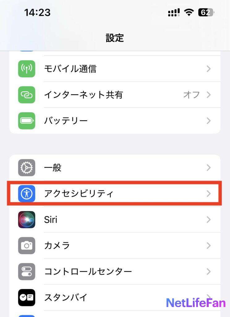 左上の「アクセシビリティ」をタップして戻ります。