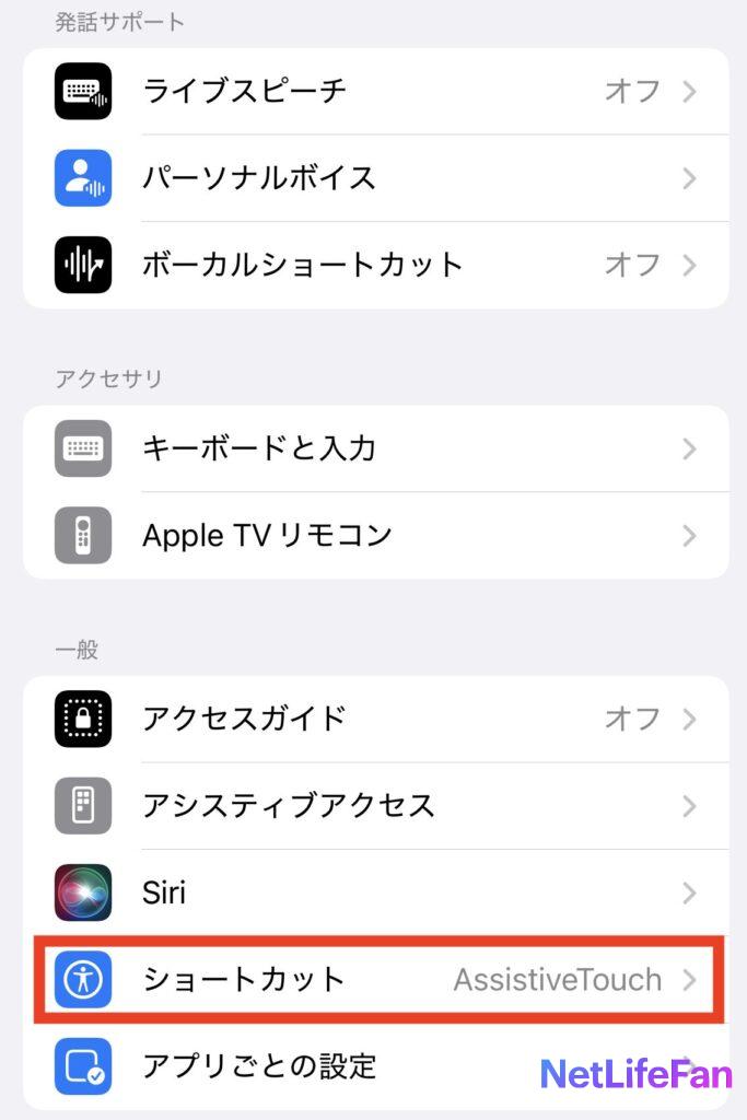 アクセシビリティの一番下に「ショートカット」があるのでタップします。