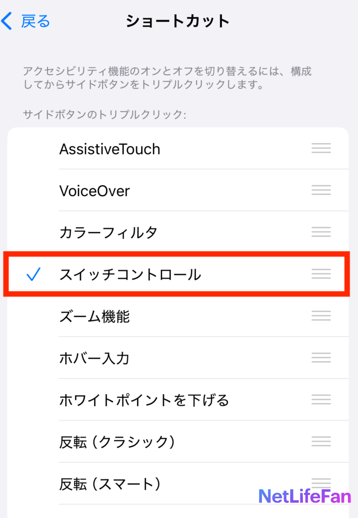 ショートカット(後述)で呼び出すのでスイッチコントロールをオンにする必要はないです。
