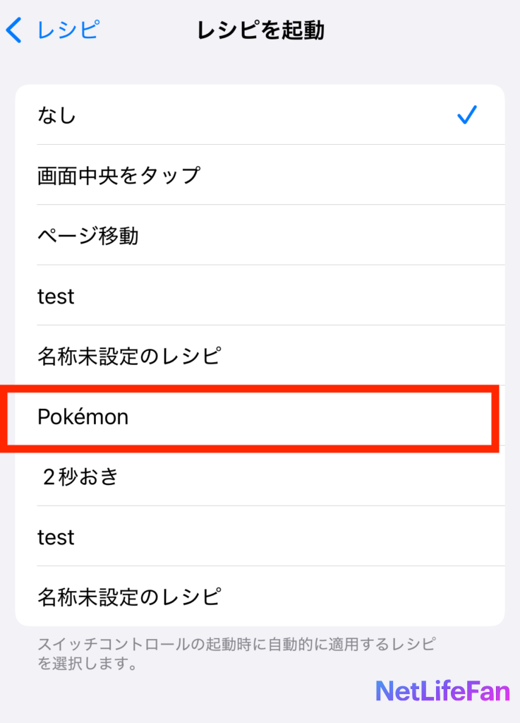ここでは「Pokemon」を起動レシピにしたいので選びます。