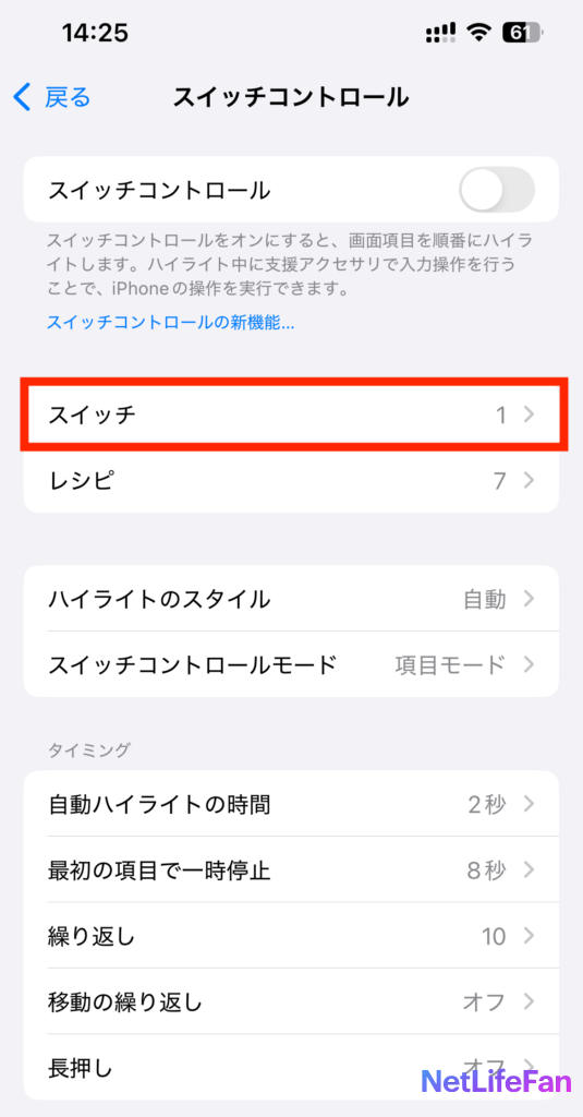 ショートカット(後述)で呼び出すのでスイッチコントロールをオンにする必要はないです。